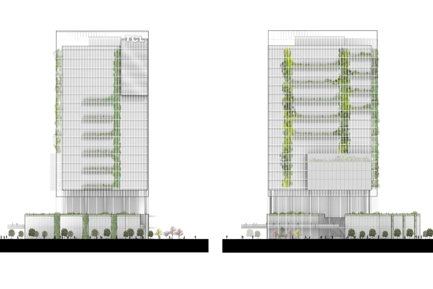 Located in Shenzhen, the new headquarters for TCL Advanced Semiconductor Display Industry merges technology, nature, and urban life. The design acts as a semiconductor, linking the urban framework to the natural context, promoting harmony, wellness, and progress. The building's elevated massing allows for unobstructed site flow, integrating nature and human scale while fostering interaction.